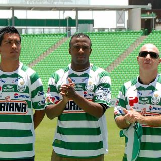 TORREÓN, COAHUILA (17/JUNIO/2010).- José Reyes, Rodolfo Salinas, Christian Benítez y Rodrigo Ruiz se pusieron la playera de Santos Laguna, en lo que fue la ceremonia de presentación de los nuevos refuerzos Guerreros.