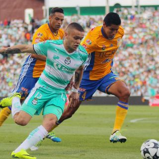 TORREÓN, COAHUILA (17/JUL/2016).- En cerrado partido, Santos Laguna y Tigres de la UANL empataron sin goles, en lo que fue el cierre de la fecha uno del Torneo Clausura 2016 de la Liga MX de futbol, que enfrentó a dos equipos considerados favoritos.