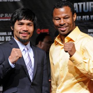 'Pacman' Pacquiao y 'Sugar' Mosley acudieron esta tarde a conferencia en el Hollywood Theatre, acompañados de sus respectivos entrenadores y el promotor Bob Arum, para dar a conocer sus estados físicos para la cartelera internacional.