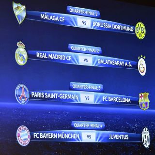 NYON, SUIZA (15/MAR/2013).- El Barcelona se enfrentará al París Saint-Germain en los cuartos de final de la Liga de Campeones y el Real Madrid jugará con el Galatasaray, mientras que el Málaga lo hará con el Borussia Dortmund, según el sorteo celebrado este viernes en Nyon (Suiza).