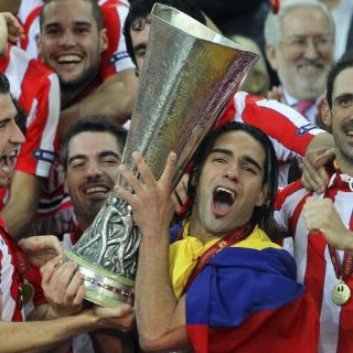 MADRID, ESPAÑA (10/MAY/2012).- El colombiano Radamel Falcao, autor de los dos primeros goles del Atlético de Madrid en la final de la Liga Europa frente al Athletic Club en Bucarest (3-0) y en general el equipo madrileño que dirige el argentino "Cholo" Simeone, reciben hoy todos los elogios de la prensa deportiva española.