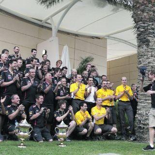 Sebastian Vettel brinda el triunfo a su equipo