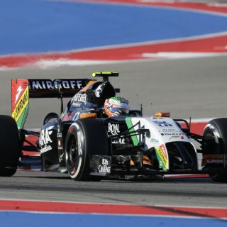 Sergio "Checo" Pérez en la edición 2014 del Gran Premio de los Estados Unidos, al quedar fuera de la carrera por un choque con Adrian Sutil, del equipo Sauber, en la competencia que se corre en el Circuito de las Américas, en la ciudad de Austin, Texas.