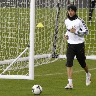 MADRID, ESPAÑA (05/ENE/2012).- El defensa sevillano Sergio Ramos, recuperado de la rotura fibrilar que sufrió en el muslo izquierdo, ha sido esta mañana la principal novedad en el entrenamiento del Real Madrid en Valdebebas para preparar el partido de Liga del sábado frente al Granada.