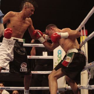 TLAJOMULCO, JALISCO (10/JUL/2010).- En una pelea de volteretas, el hermano de Saúl "Canelo" Álvarez, Ramón "Inocente" Álvarez se vio sorprendido por la dinamita de los puños del retador Daniel "Galeno" Sandoval ante el cual perdió por nocaut técnico en dos asaltos y le cedió el cetro de peso welter del Estado de Jalisco.