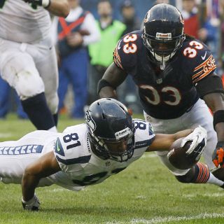 CHICAGO, ILLINOIS (02/DIC/2012).- Con un pase de anotación de 13 yardas del mariscal de campo Russell Wilson a su receptor abierto Sidney Rice, Halcones Marinos de Seattle logró un dramático triunfo en tiempo extra sobre Osos de Chicago por 23-17.