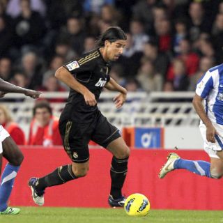 SAN SEBASTIAN, ESPAÑA (29/OCT/2011).- El Real Madrid consiguió este día una victoria ajustada por la mínima diferencia de 1-0 sobre la Real Sociedad, donde actúa el mexicano Carlos Vela, y con ello se colocó de líder provisional en la Liga de España.