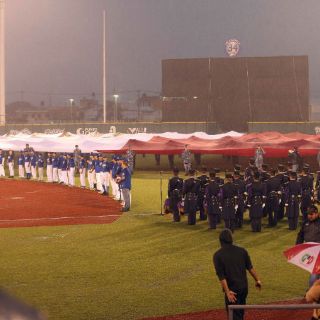 Pese a la lluvia, la directiva de Charros realizó el homenaje a la Fuerza Aérea Mexicana en su centenario, con una emotiva ceremonia en el centro del diamante del mismo estadio.