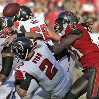 Ryan conectó con Julio Jones en un touchdown de 80 yardas en el tercer período, pero los líderes de la división sur de la conferencia nacional se vieron debajo 23-17 luego que los Bucs anotasen un touchdown, y seguidamente forzasen un fumble de Ryan que les permitió anotar un gol de campo.