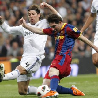 MADRID, ESPAÑA (16/ABR/2011).- El líder liguero, el Barcelona, no pudo sentenciar este sábado el campeonato español al empatar 1-1 con el Real Madrid en el "clásico" de la 32ª jornada de la Liga, disputado en el estadio Santiago Bernabéu de Madrid.