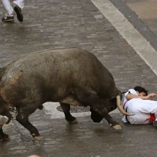 El toro, de la ganadería de José Escolar Gil, era el penúltimo de la manada al salir de los corrales y, antes de tomar contacto con los mozos en la Cuesta de Santo Domingo, se ha dado la vuelta y ha regresado sobre sus pasos.