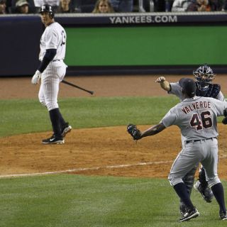 José Valverde sacó en fila a los tres bateadores en el noveno inning, cerrando con un ponche a swing perdido de Alex Rodríguez para el último out.