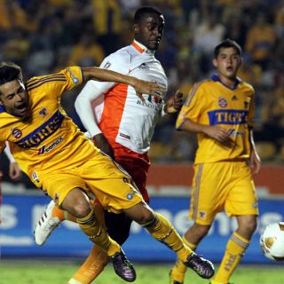 Hasta los 45 minutos fue cuando Jaguares puso en aprietos a Tigres, ya que Jackson Martínez recibió la pelota en el área, el guardameta Cirilo Saucedo salió mal y el delantero tiró bombeado de espaldas al marco, pero el balón pegó en el travesaño, por lo cual se salvaron los locales y así se fueron al descanso.