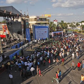 GUADALAJARA, JALISCO (14/OCT/2010).- A unos minutos de que se ponga en funcionamiento el reloj con la cuenta regresiva para la inauguración de los Juegos Panamericanos Guadalajara 2011, el ambiente en la Glorieta de La Minerva luce sensacional.