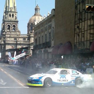 GUADALAJARA, JALISCO (26/FEB/2011).- Dejando rugir su auto Nascar, Toño Pérez y Germán Quiroga emocionan a la gente en el circuito de la Avenida Juárez y 16 de Septiembre, dando los clásicos "trompos" exactamente en el cruce de estas arterias.