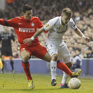 LONDRES, INGLATERRA (07/MAR/2013).- En la ida de los octavos de final de la Liga de Europa, Tottenham Hotspur aprovechó su localía en el estadio White Hart Lane y goleó 3-0 al Inter de Milán, con lo que llegará al partido de vuelta con gran ventaja.