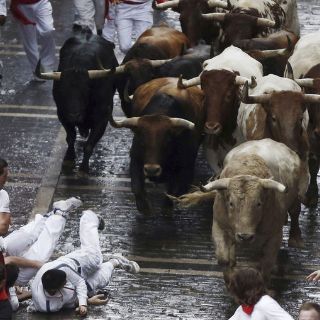 El suelo mojado ha propiciado repetidas caídas de los toros a lo largo de toda la carrera, si bien ninguno de ellos ha llegado a quedar totalmente descolgado del grupo, que ha hecho el recorrido en dos minutos y cuarenta segundos.