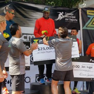 El fondista africano paró el cronómetro en una hora con cinco minutos y dos segundos, muy por encima de la marca del mexicano, quien llegó en segundo lugar con un tiempo oficial de una hora con seis minutos y 30 segundos.