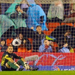 BARCELONA, ESPAÑA (09/NOV/2011).- El guardameta del Barcelona Víctor Valdés, con una contusión con edema óseo en el codo derecho, es baja por precaución para el partido de esta noche en Hospitalet (Barcelona), correspondiente a la ida de los dieciseisavos de final de la Copa del Rey, según ha informado su club.