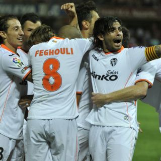 1 - Valencia CF: Diego Alves; Joao Pereira, Víctor Ruiz, Mathieu, Guardado; Fede (Feghouli, m.74), Javi Fuego, Banega, Pabón (Juan Bernat, m.65); Jonás y Postiga (Canales, m.72).