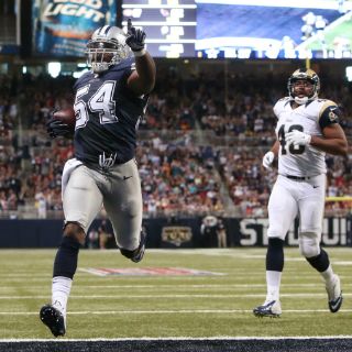 SAN LUIS, MISSOURI (21/SEP/2014).- Terrance Williams anotó el touchdown de la ventaja en el cuarto periodo, y Bruce Carter regresó una intercepción 25 yardas para la anotación en la siguiente jugada, coronando la remontada de los