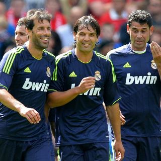 MANCHESTER, INGLATERRA (02/JUN/2013).- Los goles de Fernando Morientes y Rubén de la Red dieron hoy la victoria por 1-2 a los veteranos del Real Madrid sobre los del Manchester United en un amistoso jugado hoy en el estadio Old Trafford ante unos 60 mil espectadores.