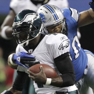 DETROIT, MICHIGAN (19/SEP/2010).- El segundo pase para anotación de Michael Vick puso adelante en el marcador a las Águilas de Filadelfia justo antes del descanso del medio tiempo y tuvieron que resistir para vencer el domingo a los Leones de Detroit por 35-32.
