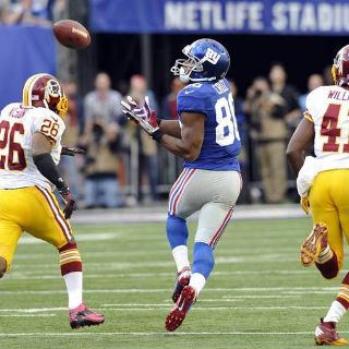 NEW MEADOWLANDS, N.J. (21/OCT/2012).- Eli Manning lanzó un pase de touchdown de 77 yardas a Víctor Cruz con 1:13 por jugarse y los Gigantes de Nueva York supieron reaccionar tras una anotación del novato sensación Robert Griffin III al vencer el domingo por 27-23 a los Pieles Rojas de Washington.