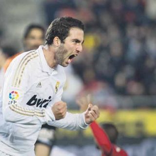 MALLORCA, ESPAÑA (15/ENE/2012).- El Real Madrid, con tantos en la recta final del argentino Gonzalo Higuaín y José María Callejón, remontó en el campo del Mallorca 2-1, en la 19ª jornada de la Liga española, y sigue imparable como líder, logrando ya el título honorífico de campeón de invierno.