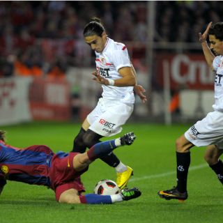 El Barça cedió hoy dos valiosos puntos en el estadio Ramón Sánchez Pizjuán ante el Sevilla en el duelo de la jornada 28 del torneo doméstico.