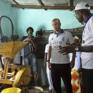 Zidane visitó, en el pueblo de Koursalé, sesenta kilómetros al suroeste de la capital, Bamako, a un grupo de mujeres que trabajan con una máquina multiusos que abastece al pueblo con una energía suficiente para moler cereales, procesar arroz y recargar baterías.