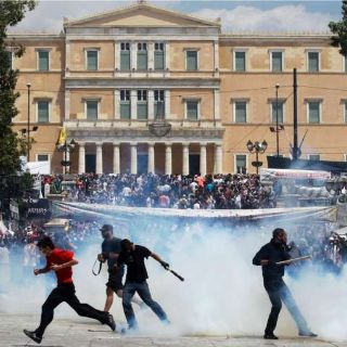 La sesión se celebró en medio de graves disturbios entre la policía y cientos de manifestantes en las proximidades del Parlamento, cuando el país está inmerso en la primera de las dos jornadas de una huelga general que paraliza al país.