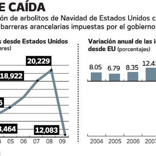 La Asociación Nacional de Importadores y Exportadores de la República Mexicana (ANIERM) informó que en 2008 el valor de las importaciones de los tradicionales árboles Douglas y Noble, entre otros, llegó a 20 mil 229 millones de dólares, pero al cierre de 2009 la cifra cayó a 12 mil 83 millones de dólares; este año el organismo considera que la cifra podría cerrar en los mismos niveles.