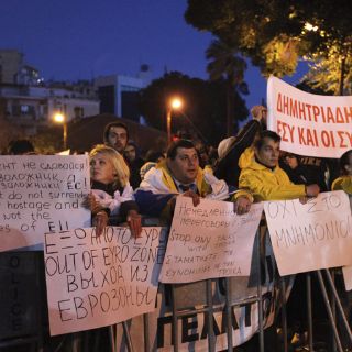 NICOSIA, CHIPRE (23/MAR/2013).- El Gobierno de Chipre acordó hoy con la troika imponer una tasa exclusivamente a los depósitos bancarios superiores a los 100 mil euros de entre un 4 % y un 20 por ciento.