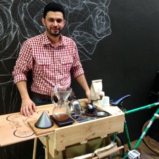 SAN JUAN, PUERTO RICO (19/MAY/2014).- El innovador barista puertorriqueño Daniel Rivera recorre las calles de su país sobre su propia bicicleta, desde donde prepara y vende café, al tiempo que informa a sus clientes, turistas y locales, sobre esta importante industria para la isla caribeña.