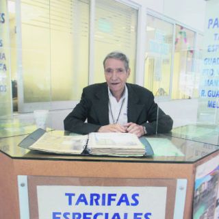 GUADALAJARA, JALISCO (12/OCT/2014).- El trabajo de Jesús González, de 81 años, consiste en dar información turística a las personas que llegan a la Nueva Central de Autobuses, en Tlaquepaque. Sabe de hoteles, paseos, camiones y ciudades. Aprendió hace 39 años, cuando empezó a trabajar en la Central Vieja, donde estuvo como asesor turístico.