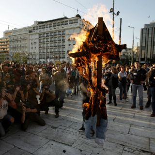 Mientras se celebraba el debate, cerca de un millar de personas se congregó ante el Parlamento para protestar contra las medidas, en una manifestación convocada por el sindicato del sector público Adedy.