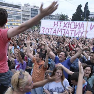 ATENAS, GRECIA (04/JUN/2011).- Los indignados griegos volvieron hoy a salir a las calles del país para protestar pacíficamente contra las nuevas medidas de austeridad que el gobierno ha aprobado para lograr un nuevo tramo de ayuda financiera y evitar la quiebra estatal.