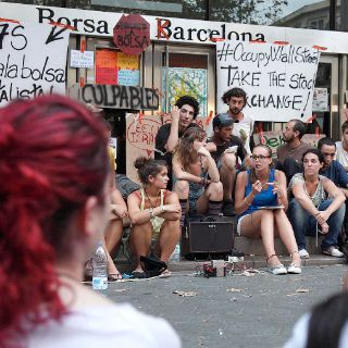 El acto de protesta ante la Bolsa de Barcelona ha coincidido con otras protestas similares, especialmente la concentración celebrada ayer por un grupo de personas en Wall Street, en la ciudad de Nueva York.