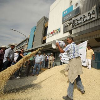 Maiceros tiran granos en la delegación de Economía