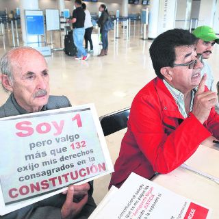 Con guardias siguiendo sus pasos y reportando a través de sus radios de comunicación cada paso desde que entraron con una mesa y sillas a la terminal de vuelo, los integrantes de ese ejido anunciaron en una de las salas de la terminal aérea el fallo judicial del Juzgado Tercero de Distrito en Materia Administrativa que les regresó sus tierras.
