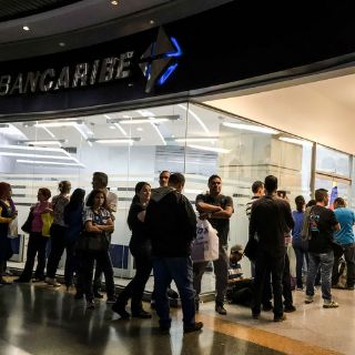 Mientras, seguían las largas filas de venezolanos en los bancos públicos y privados tratando de canjear o depositar fajos de billetes de 100, conocido como "marrón".