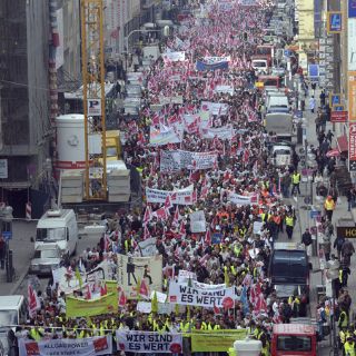 "Lo que los empleadores públicos han puesto de momento sobre la mesa constituye una reducción programada del salario real" al no compensar la inflación, declaró el presidente de Ver.di, Frank Bsirske, en un acto de protesta en la capital bávara, Múnich, que congregó a unas 10 mil personas.