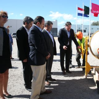 Esta mañana se realizó una ceremonia en la que se efectuó la colocación de la primera piedra de la nueva planta de Synthon, en la que estuvieron presentes funcionarios estatales, entre ellos: el titular de la Secretaría de Desarrollo Económico (Sedeco), José Palacios, y el alcalde de Tlajomulco de Zúñiga, Alberto Uribe.