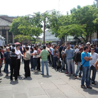 GUADALAJARA, JALISCO (30/JUL/2013).- Tres mil 720 personas acudieron este martes al denominado "reclutamiento masivo" en Plaza Liberación, en el que se ofertaron dos mil 500 vacantes de 09:00 a 14:00 horas, informó Luis Pablo Pinzón González, director de Vinculación Laboral del Servicio Nacional del Empleo Jalisco.