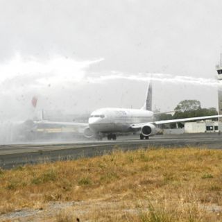 Cinco tijerazos después, que seccionan el cordón representativo de la inauguración, el avión está listo para emprender el vuelo.