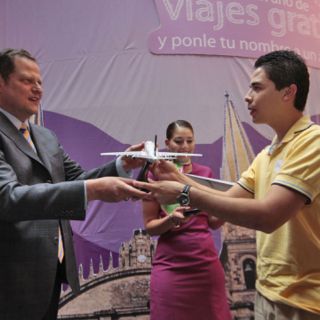 Óscar Aarón Calixto Valencia fue uno de los 27 ganadores del concurso anual de Volaris “Juégate un año de viajes gratis y ponle tu nombre a un avión”, que ayer recibieron su premio: un año entero para viajar sin costo a cualquier punto donde vuela esta aerolínea. Óscar nunca había volado en avión y ahora podrá hacerlo, junto con un acompañante, para conocer los lugares que desee.