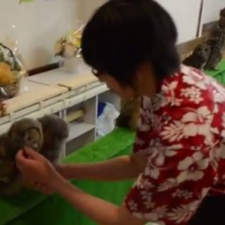 Los vídeos que Yano ha subido a la página YouTube muestra una afectuosa respuesta por parte de estos jóvenes búhos cuando alguno de los clientes les hacen caricias.