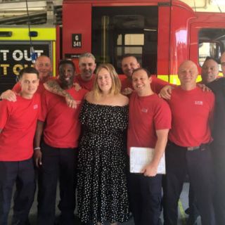 El cuerpo compartió en Twitter las fotos, en las que se veía a la cantante posando con los bomberos ante un camión en el parque de Chelsea. Adele se tomó una taza de té con los bomberos el lunes y les dio las gracias por sus esfuerzos combatiendo el incendio en la Grenfell Tower de 24 pisos.