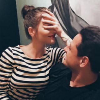 ‘Felicidad en estado puro’ escribió la actriz de 25 años para acompañar la imagen en donde ella aparece sentada en las piernas del jugador del West Ham, sonriendo y con la cara tapada.